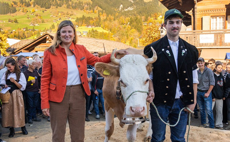 Die schönste Kuh aus dem Simmental trägt einen neuen Namen: Die Miss Lenk 2025 heisst Alexija. Die prächtige Simmentalerin wurde am Samstag, 11. Oktober 2025, unter tosendem Applaus zur Siegerin gekürt. Ein Moment voller Stolz, Emotionen und einem kräftigen Glockenklang zur Krönung. Wie in den vergangenen Jahren fiel die Wahl des Publikums auf eine reinrassige Simmentalerin. Sinnbild der Region und Inbegriff ihrer bäuerlichen Kultur. Der Entscheid war eng, doch Alexija konnte sich mit 253 Stimmen knapp vor der Zweitplatzierten durchsetzen. Ein besonderer Moment auch für ihre Besitzerfamilie Heidi und Walter Beetschen, als ihrer Siegerin die traditionelle Glocke durch die Geschäftsführerin von Lenk-Simmental Tourismus, Helena Galanakis, umgehängt wurde. Als frischgebackene Miss Lenk wird Alexija nun auch als offizielles Model die Ferienregion Lenk-Simmental repräsentieren. Das 28. Älplerfest zog in diesem Jahr mehr als 5.000 Besucherinnen und Besucher aus Nah und Fern an.