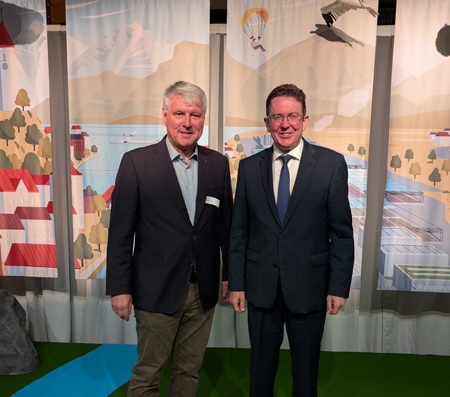 Bundesrat Albert Rösti ist Vorsteher des Eidgenössischen Departements für Umwelt, Verkehr, Energie und Kommunikation (UVEK) und war Gemeindepräsident in Uetendorf, wo er auch heute noch wohnt. Er spricht im Interview mit Radio BeO von einem Vorzeigeprojekt. Insbesondere die Möglichkeit des Zusammenfaltens sei wichtig, da so auch im Winter bei gutem Wetter Strom produziert werden kann und dieser in dieser Jahreszeit besonders wichtig ist.