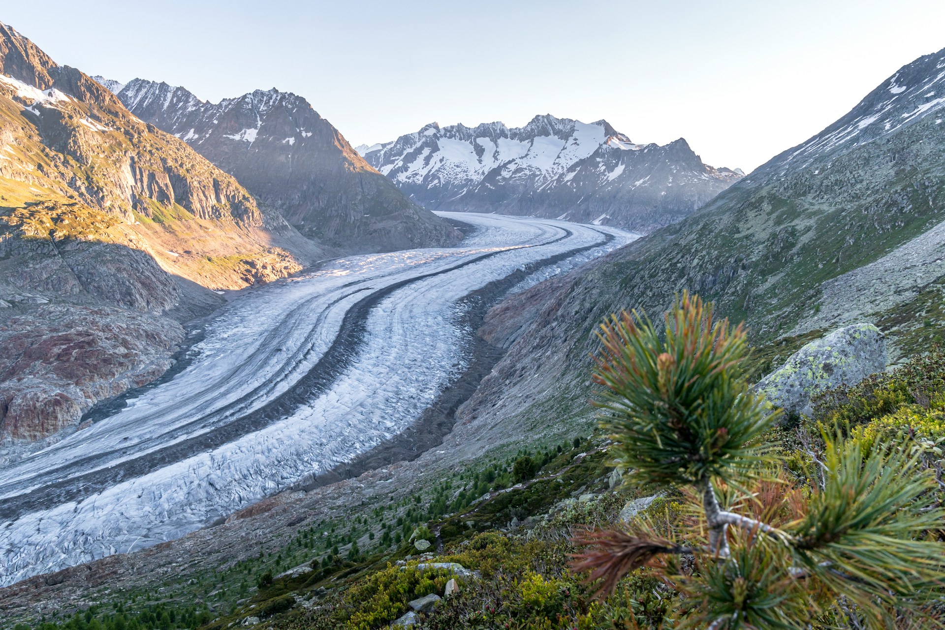 Sie sind die stummen Zeugen des Klimawandels: Die Gletscher der Alpen. Manche sind bereits fast vollkommen verschwunden, alle haben in den letzten Jahren an Volumen eingebüsst. Die Folge der Klimaerwärmung auf die Eisströme des Berner Oberlandes seien klar sichtbar, sagt der im Oberland aufgewachsene ETH-Klimatologe Reto Knutti. Es habe in den letzten Jahren eine starke Gletscherschmelze gegeben, rund ein Viertel ihres Volumens haben die Schweizer Gletscher verloren, das seien extrem schnelle Veränderungen. Alleine der Aletschgletscher verliere vier bis sechs Meter an Dicke im Jahr. Die Hälfte der Gletschermenge in der Schweiz sei bereits verloren. Selbst im optimistischsten Szenario müsse man mit dem Verlust der Hälfte dessen rechnen, was jetzt noch an Eis da sei.