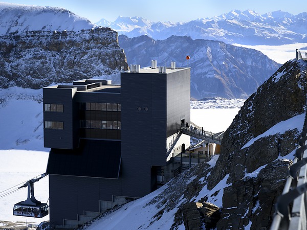 Zwei Jahre nach dem Brand im Skigebiet Glacier 3000 ist am Donnerstag ein neuer Tourismuskomplex mit Panorama-Restaurant eingeweiht worden. Der Wiederaufbau nach den Plänen von Mario Botta wurde zum Anlass genommen, den Brandschutz zu verstärken.