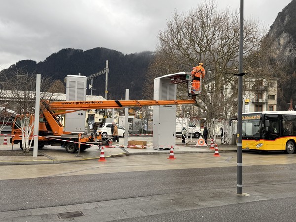 Mit zwölf Ladestationen steht am neuen Standort in Wilderswil die Intrastruktur für den künftigen Betrieb mit Elektropostautos bereit. Im Endausbau können dort 18 Postautos über Nacht aufgeladen werden. Für’s Zwischenladen tagsüber wurden am Bahnhof Interlaken West zwei Pantografen installiert. Die ersten sieben E-Postautos werden voraussichtlich im Frühling in Interlaken unterwegs sein, weitere folgen im Verlauf von 2025. Wegen Lieferengpässen war dies noch nicht auf den aktuellen Fahrplanwechsel hin möglich. Um die Flotte für die Übergangszeit zu verstärken, setzt PostAuto in Interlaken temporär vier konventionelle rotweisse Leihbusse ein.