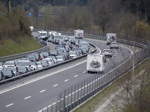 Einen grossen Stau gab es am Pfingstsamstag in der Nähe der Schweizer Grenze. Am Mont-Blanc-Strassentunnel, der Chamonix F mit Courmayeur I verbindet, gab es eine erhebliche Verkehrsüberlastung. Der Zeitverlust betrug bis zu 2 Stunden und 15 Minuten.