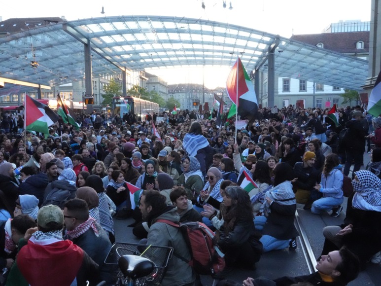 In der Kundgebung zuvor forderten die Teilnehmerinnen und Teilnehmer von Israel, die Aktivistinnen und Aktivisten der Gaza-Hilfsflottille freizulassen. Die Schweiz müsse ihre völkerrechtlichen Verpflichtungen wahrnehmen und sich „aktiv für ein Ende des Genozids in Gaza“ einsetzen, hiess es weiter.
