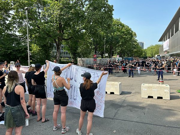 Auf Transparenten forderten die Demonstrierenden „Keine Bühne für Täter“. Die Teilnehmerschaft stammte aus Kreisen von Juso, Campax und feministischem Kollektiv Bern. Mit Choreographien und in Sprechchören wandten sie sich gegen sexualisierte Gewalt, wie ein Reporter der Nachrichtenagentur Keystone-SDA vor Ort beobachtete.