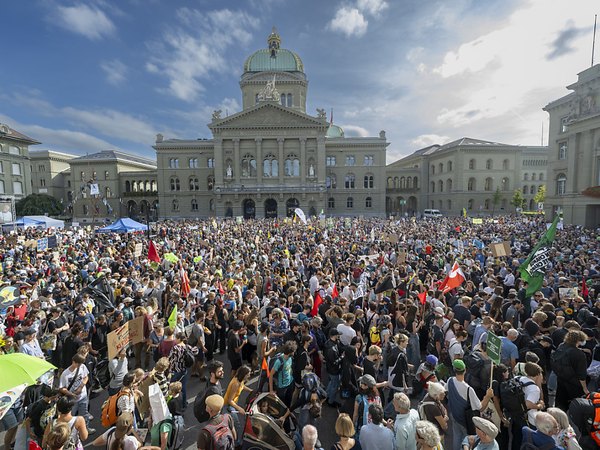 Zehntausende Menschen haben am Samstag in Bern für mehr Klimaschutz demonstriert. Im Kampf gegen die bereits spürbare Klimakrise brauche es radikale Massnahmen, forderten Rednerinnen und Redner vor dem Bundeshaus.