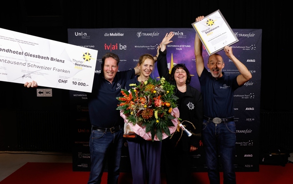 Der Thuner Sozialstern 2024 geht an das Grandhotel Giessbach in Brienz. Das Unternehmen erhält die mit 10’000 Franken dotierte Auszeichnung für sein herausragendes Engagement für die berufliche Inklusion von psychisch beeinträchtigten Menschen.