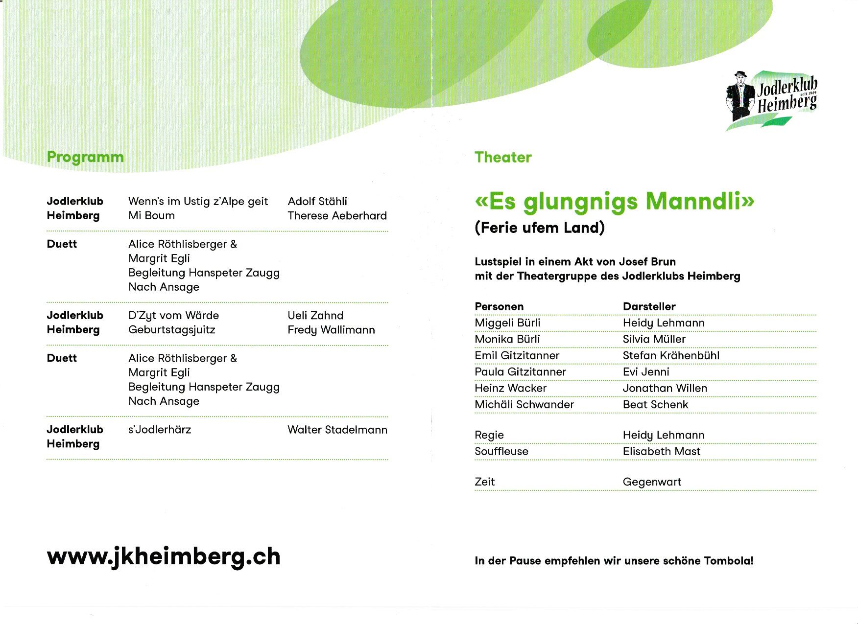Konzert und Theater mit dem Jodlerklub Heimberg 23.01/ 24.01/ 25.01.